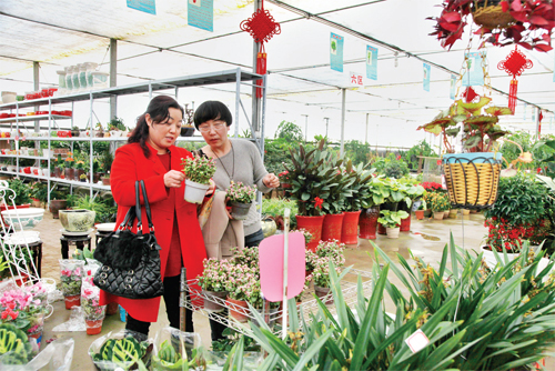 2月16日,市民在忻州城區(qū)七一南路的“陳紅花卉”批發(fā)市場選購花卉?!岸拘袆印遍_展以來,忻府區(qū)發(fā)揮區(qū)位優(yōu)勢,大力扶持發(fā)展特色觀賞農(nóng)業(yè),為農(nóng)民增收挖掘新的經(jīng)濟增長點。春節(jié)期間,一批像“陳紅花卉”大棚一樣的花卉種植戶獲得了較高的經(jīng)濟收入。(侯睿 攝)