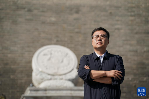 趙彬在西安城墻永寧門內(nèi)(2025年9月12日攝)。(新華社記者 邵瑞 攝)