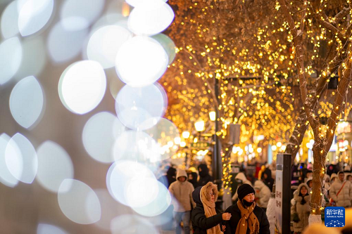 時下,“冰城”哈爾濱正值冰雪旅游季。夜幕降臨,百年老街中央大街被璀璨燈火點亮,游客置身其中,仿佛步入流動的冰雪藝術長廊,令人流連忘返。