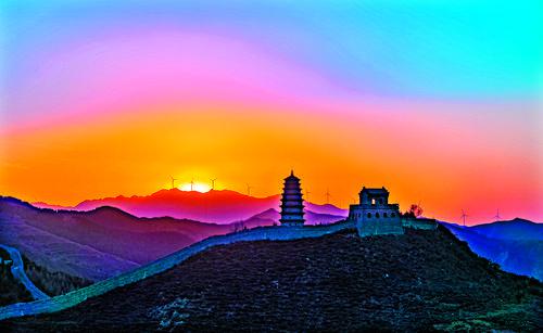 山勢(shì)險(xiǎn)峻的雁門(mén)關(guān),四季都有獨(dú)特的風(fēng)景。春天,百花盛開(kāi),使得雄渾的長(zhǎng)城燦爛奪目;夏天,色彩斑斕,背靠翠綠的山林,呈現(xiàn)生機(jī)勃勃的景象;秋天,丹楓如火,由綠轉(zhuǎn)黃,由黃轉(zhuǎn)紅,如詩(shī)如畫(huà),美不勝收;冬天,長(zhǎng)城被雪花覆蓋,顯得更加滄桑,猶如童話世界般靜謐而誘人。