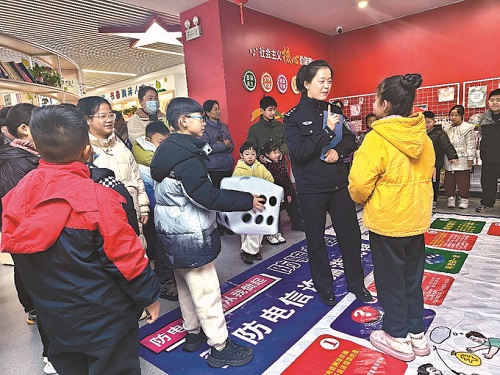 肥西縣公安局反詐中心民警張曉婉通過(guò)“反詐飛行棋”開(kāi)展反詐宣傳。人民公安報(bào)記者徐琦攝