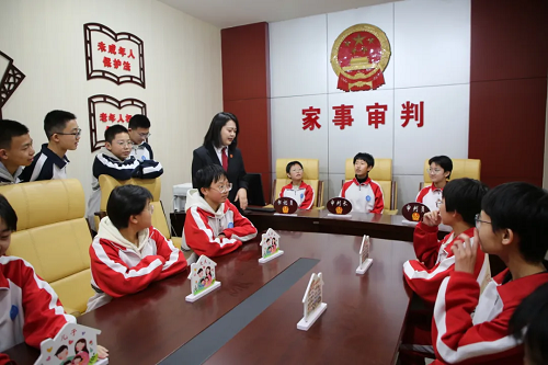在法院講解員的帶領(lǐng)下,學(xué)生們依次參觀了訴訟服務(wù)中心、家事文化長廊、陽光大廳、科技法庭、院史陳列室等場所,認真觀看了中院全面建設(shè)專題片和中院干警自編自導(dǎo)自演的預(yù)防未成年人犯罪題材法治微電影《你依然是天使》,對法院的職能作用、機構(gòu)設(shè)置、歷史文化、信息化建設(shè)有了更為深刻的認識。