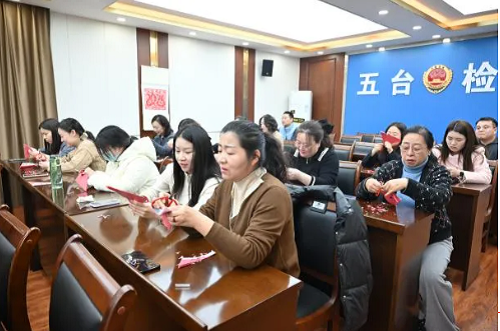 春風拂面,芳華熠熠。3月3日,在第115個“三八”國際婦女節(jié)來臨之際,五臺縣檢察院開展“共護非遺之美 盡展檢花風采”剪紙活動,以指尖藝術(shù)傳遞法治溫度,用文化傳承凝聚巾幗力量?;顒友埧h人大常委會黨組書記、宣傳部部長姚云萍,縣人民政府副縣長李文秀、孫士艷,縣婦聯(lián)主席朱彩虹,縣委宣傳部副部長張淑珍參加。院黨組書記、代檢察長宋志遠參加活動,黨組副書記、主持日常工作的副檢察長牛鵬飛主持活動。