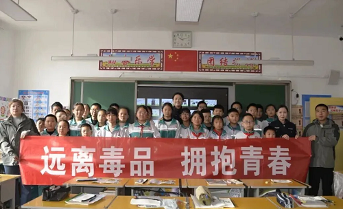 活動尾聲,在民警的帶領(lǐng)下,全體同學高舉右拳,莊嚴宣誓,“珍愛生命,遠離毒品,防毒拒毒,從我做起”鏗鏘有力的誓言回蕩在校園,既展現(xiàn)了同學們抵制毒品的堅定決心,也讓“晉善警美”的法治理念深深扎根于青少年心中。