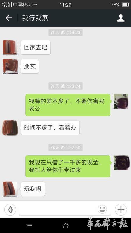 趙婷用微信與丈夫聯(lián)系,回復(fù)的人卻變成了“綁匪”,索要6萬(wàn)元的贖金,否則撕票。趙婷說(shuō),一定會(huì)湊錢,但要保證王江的人生安全,不能虐待,各取所需都不為難人,“綁匪”卻一直逼問(wèn)著錢的下落,并煞有其事地強(qiáng)調(diào)“不要報(bào)警”。