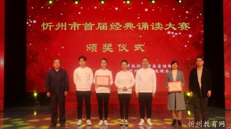 “共讀中華經(jīng)典,聆聽古詩書韻”。由中共忻州市委宣傳部主辦,忻州市廣播電視臺承辦 “忻州市首屆經(jīng)典誦讀大賽”經(jīng)過初賽海選和緊張激烈的復(fù)賽和決賽,于11月1日落下帷幕。本次比賽學(xué)生組共有四十一個參賽節(jié)目,經(jīng)過角逐,有十個節(jié)目進(jìn)入了決賽。決賽采取評委當(dāng)場亮分,現(xiàn)場點(diǎn)評的方式,最終評出一等獎一名,二等獎二名,三等獎三名,最佳風(fēng)采獎四名。七一路小學(xué)以98.51分的成績奪冠,榮獲學(xué)生組一等獎。同時學(xué)校也榮獲優(yōu)秀組織獎。