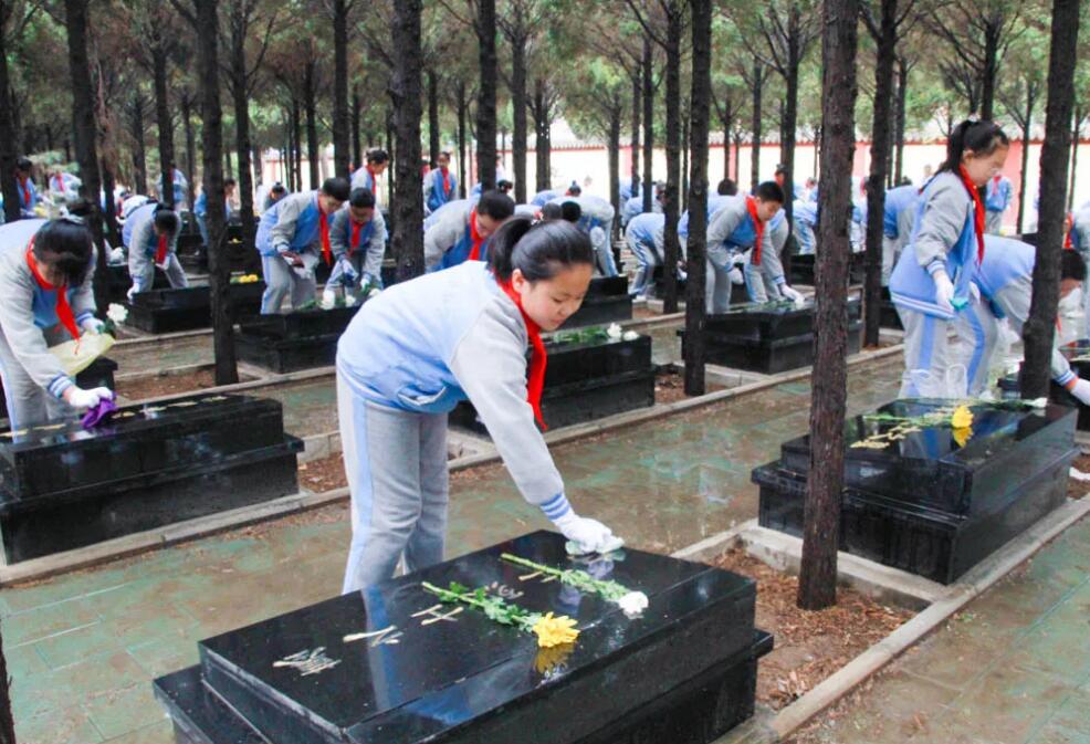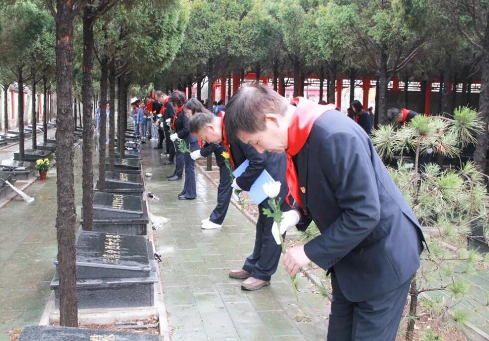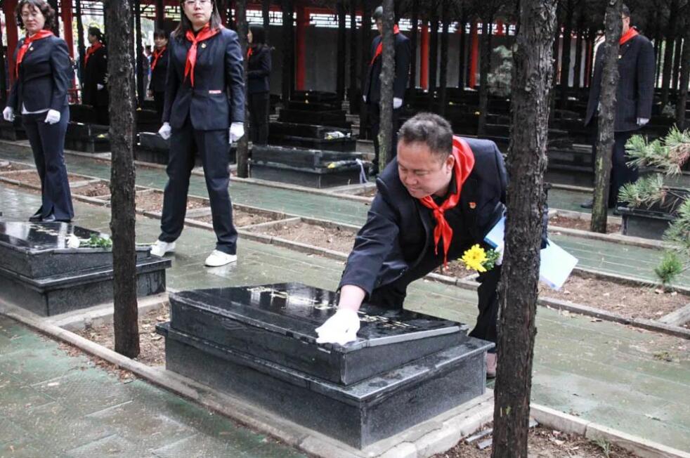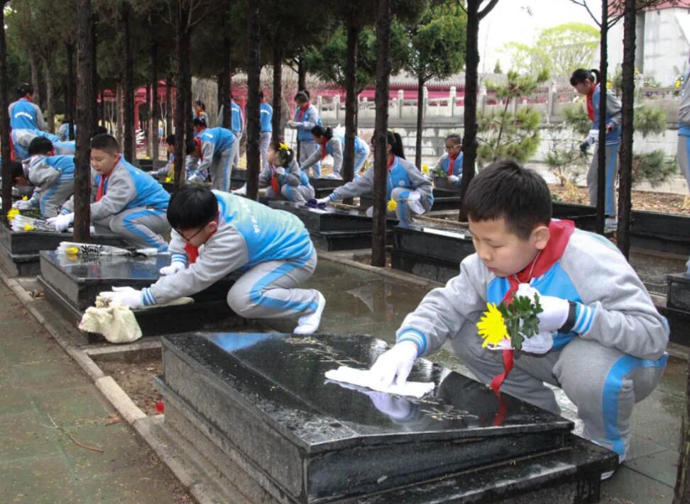 在祭奠活動中,同學們跟隨盧俊芬老師一道學習了趙正午烈士的革命故事,為烈士陵園的先烈們敬獻花籃、默哀,并細致的擦拭了每座烈士墓碑,以此表達對先烈們的無限哀思。