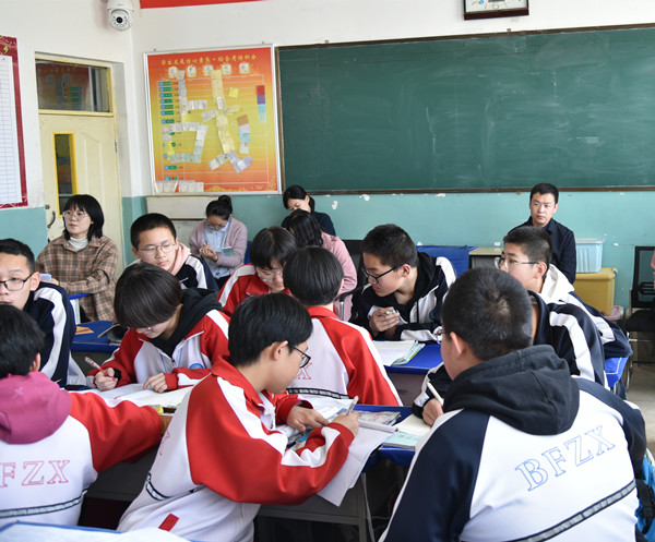 我校教師分組認真觀摩北方教師的課堂教學。