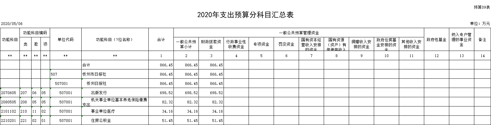 9、一般公共預(yù)算支出預(yù)算分功能科目匯總表