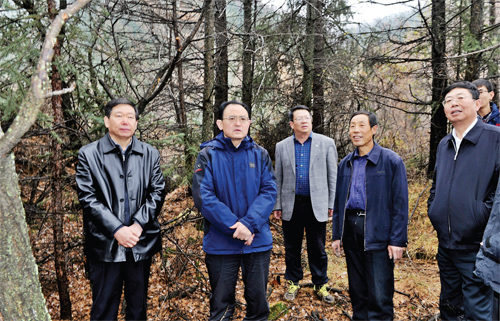 圖為市委書記李俊明在管涔山林區(qū)調(diào)研華北落葉松保護(hù)情況。(劉紀(jì)森 攝)