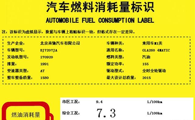 國(guó)產(chǎn)奔馳新款GLA油耗信息