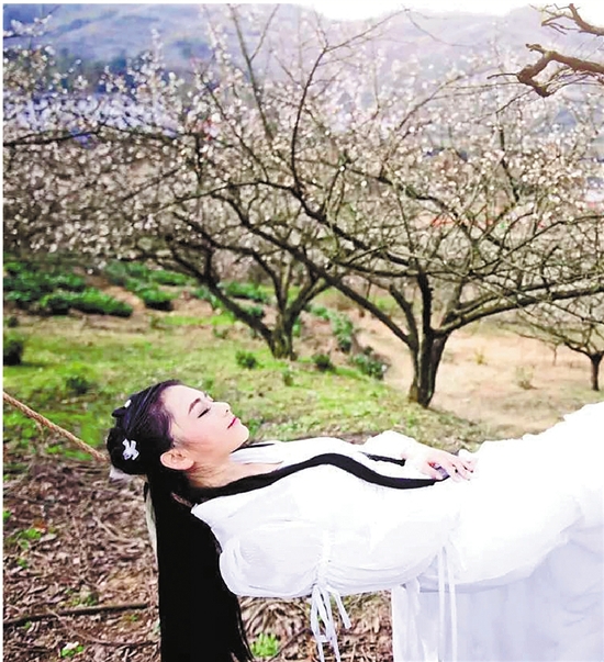 浙江在線03月22日訊(錢江晚報(bào)通訊員陳玉婷 記者苗麗娜)盛開的香雪梅海間,一個(gè)女孩白衣勝雪。或舞劍瀟灑不拘,行云流水;或輕曳秋千,靈動(dòng)輕盈;或側(cè)顏微笑,嬌美動(dòng)人。