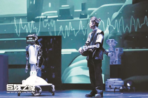 這是國(guó)內(nèi)首部機(jī)器人戲劇《巨物之城》的演出現(xiàn)場(chǎng)。演員與機(jī)器人一同完成了80分鐘的表演,謝幕后,臺(tái)下觀眾涌上舞臺(tái),爭(zhēng)相與“堂吉訶德”“麒麟臂”“嵐”等機(jī)器人合影、問(wèn)好。機(jī)器人——這個(gè)在日常生活中還頗為“遙遠(yuǎn)”的形象,第一次以情感表達(dá)者的身份,走近了普通觀眾。