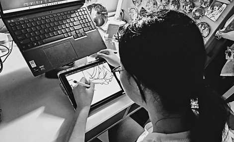大三學(xué)生王笑然參與設(shè)計(jì)工作。