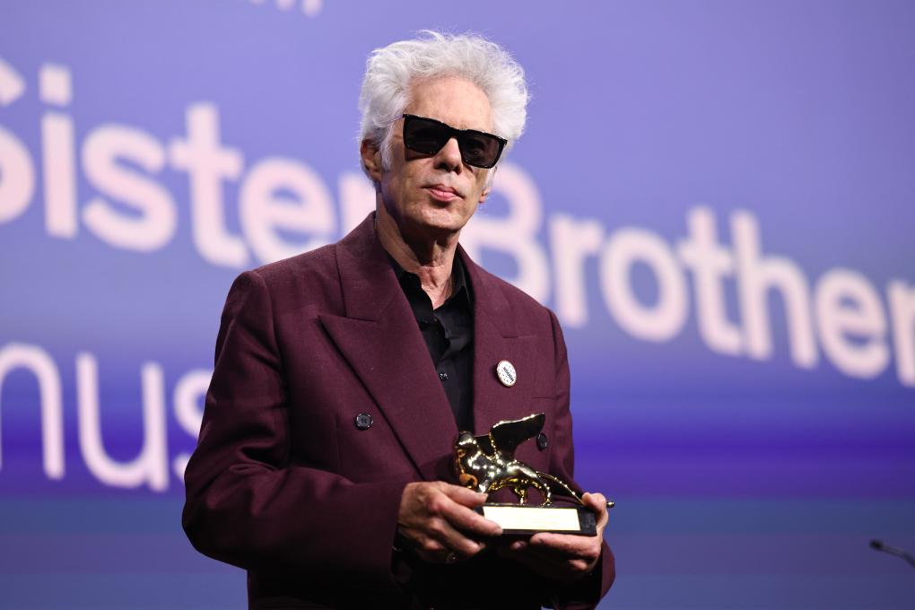 9月6日,在意大利威尼斯,最佳影片金獅獎《父母姐弟》的導演吉姆·雅穆施與獎杯合影。新華社記者 李京 攝