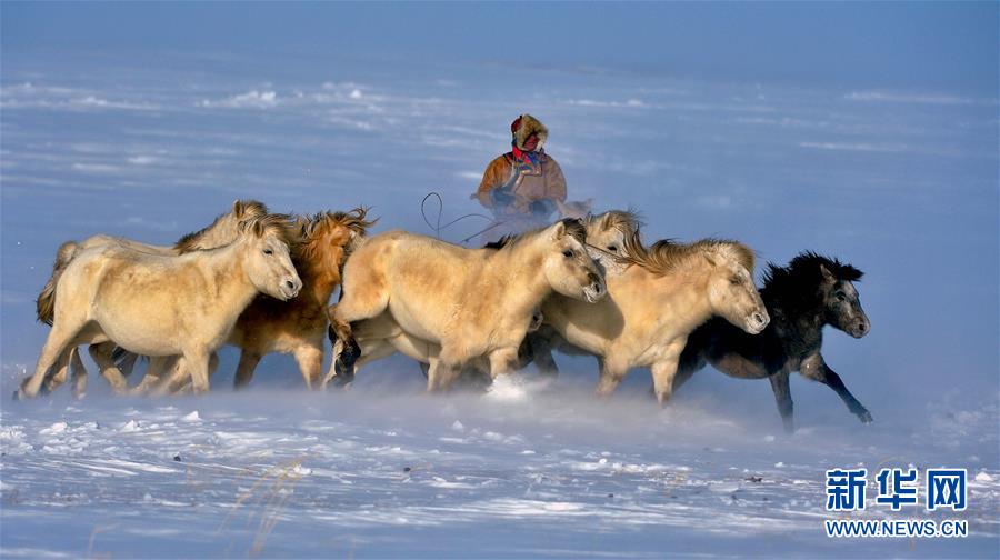 1月5日,蒙古族牧民在套馬。當(dāng)日,2016年烏珠穆沁馬文化節(jié)在內(nèi)蒙古錫林郭勒盟西烏珠穆沁旗吉仁高勒鎮(zhèn)舉行。當(dāng)?shù)孛晒抛迥撩裆碇A麗的民族服飾,帶著馬匹從四面八方趕到會場,參加賽馬、套馬、乘馬拾物、蒙古馬選美等多項具有民族特色的活動,吸引大批游客前來觀看。新華社記者 任軍川 攝