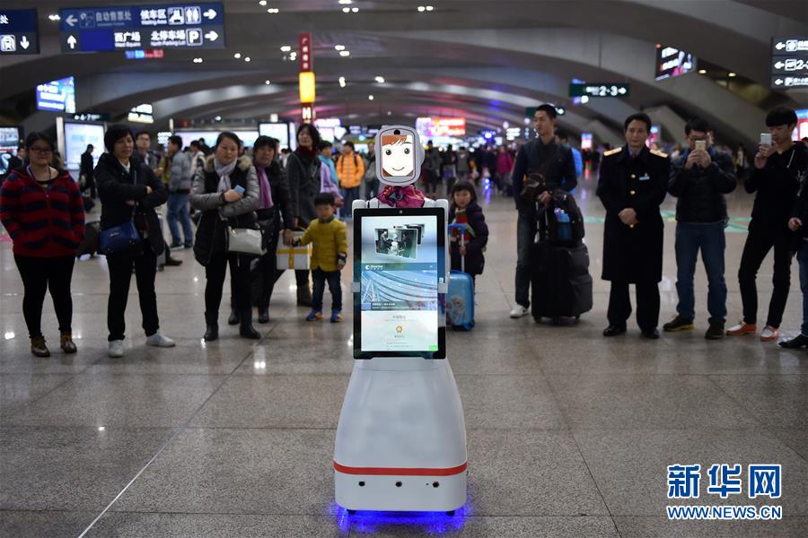 2月1日,旅客們在廣州南站與智能機器人“小璐”對話。當日,一臺名叫“小璐”的智能機器人亮相廣州南站,吸引了大批旅客的圍觀,大家紛紛嘗試與“小璐”對話,向她咨詢列車時刻、購票信息、天氣情況等問題,“小璐”不僅可以用甜美的女聲一一作答,還可以在接收到語音指令后,為旅客“唱歌”和“跳舞”。據(jù)了解,使用智能機器人服務(wù)旅客是廣州南站在今年春運中的新嘗試,如果試用效果良好,今后有望在車站中看到更多智能機器人的身影。新華社記者 梁旭 攝