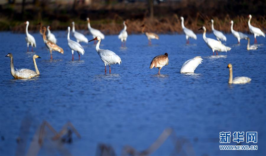 受新一輪北方冷空氣南下影響,江西鄱陽(yáng)湖越冬候鳥(niǎo)數(shù)量激增,一年中最佳的觀鳥(niǎo)時(shí)節(jié)到來(lái)。江西鄱陽(yáng)湖國(guó)家級(jí)自然保護(hù)區(qū)管理局近日監(jiān)測(cè)顯示,飛抵保護(hù)區(qū)的候鳥(niǎo)總數(shù)達(dá)到16萬(wàn)只,主要包括大雁、小天鵝、白鶴、東方白鸛等。