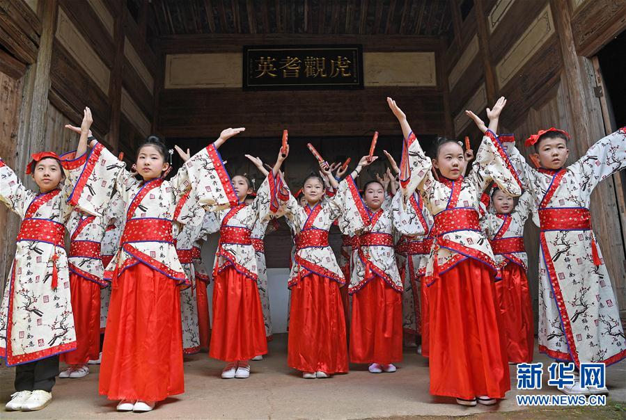 4月23日,江西省宜黃縣實驗小學的孩子們在詩會現場誦讀詩歌名篇。正值谷雨時節(jié),“走進風景宜黃”谷雨詩會在江西省宜黃縣桃陂鎮(zhèn)戈坪生態(tài)村舉行。觀眾在詩會現場賞詩歌、聽古曲、話鄉(xiāng)愁,盡賞詩情“話”意,感受中國傳統文化的魅力。新華社記者 萬象 攝