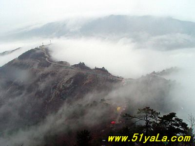 北武當(dāng)山主峰四周幾乎都是陡壁懸崖,只有一條人造“天梯”可攀。來(lái)到山腳下,過(guò)五里黃土、五里沙路,便是1400余級(jí)就山鑿筑的石階,凡險(xiǎn)峻之處,設(shè)有鐵索扶手。石階一線(xiàn)疊置,從下仰視,宛如“天梯”。游人攀登,每一步都可聽(tīng)到悠揚(yáng)頓挫的“石音”,形成獨(dú)特的“石樂(lè)”絕景。沿著石階,奇松異石、廟宇石刻,掩沒(méi)在蔥郁的山林植被之中,相間點(diǎn)綴,相映成趣。主要的山石景觀有:古猿望日、石豬受難、九龍出洞、石象守山、天壺傾露、石羊朝圣、石龜下蛋、石虎、石蛤蟆、龜蛇斗智等。最令人稱(chēng)奇的是“龜蛇斗智”奇觀,相傳神龜和青蛇不安心修道,互相格斗,經(jīng)過(guò)七七四十九天的麈戰(zhàn),神龜節(jié)節(jié)敗退,青蛇步步緊逼。其時(shí),恰逢真武大帝返宮,見(jiàn)狀,輕輕用手指一點(diǎn),龜蛇便動(dòng)彈不得,從此永久停留在這里,成千古一絕——“蛇石”虎視眈眈,“龜石”尾臨懸崖,萬(wàn)斤重石,峭立崖畔,用力一推或經(jīng)風(fēng)一吹,便搖搖欲墜,令人心懸,所以又稱(chēng)風(fēng)動(dòng)石,為我國(guó)罕見(jiàn)的景觀之一。主要的奇松景觀有:鴛鴦松、迎客松、托天松、母子松等。最使人嘆為觀止的是“擎天探海松”,其松立于石階半道,樹(shù)身技分兩杈,一直刺青天,一枝瞰群峰。近金頂?shù)悄咸扉T(mén)石階,旁邊陡崖上刻有“喬松”二字,據(jù)載為清代道光年間永寧州牧王繼賢手跡?,F(xiàn)存喬松樹(shù)樁直徑近1米,可以想見(jiàn)其昔日雄姿。主要的懸崖峭壁有:千仞壁、舍身崖、鷹嘴崖等。還有呈垂直分布的植被,其色彩和花期隨季節(jié)變化,給北武當(dāng)山披上了“春粉、夏艷、秋紅、冬白”的盛裝。登臨武當(dāng)之巔,一覽眾山,但見(jiàn)遠(yuǎn)山蒼茫,近日含黛,松風(fēng)撲面,白云飄逸;只聞松濤陣陣,山泉潺潺,鳥(niǎo)語(yǔ)唧唧,似琴弦輕撥;夏秋之季,如晴空萬(wàn)里,金頂之下,叢林景觀相間,似七彩織錦;白云遠(yuǎn)處,群山連綿,猶如萬(wàn)龍翻騰,極為壯觀。