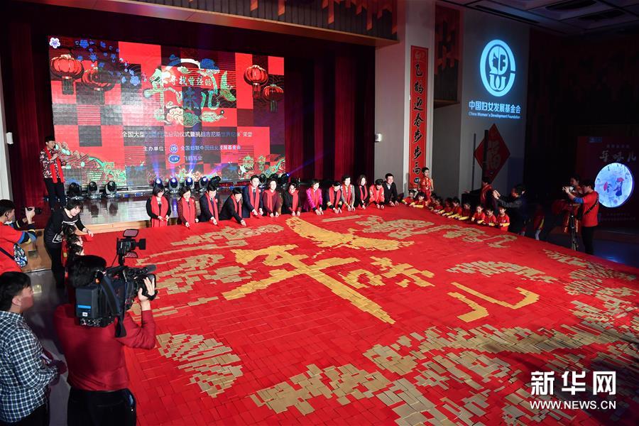 1月11日,“尋找曾經(jīng)的年味兒”全國大型公益行動在北京中國婦女兒童博物館啟動,通過發(fā)放年味兒畫冊、舉辦年味兒趣味活動,弘揚傳統(tǒng)文化,同時為貧困家庭、醫(yī)護工作者送去問候與關(guān)愛?;顒又?,由近6萬個紅包拼鋪而成的64平方米“最大紅包拼圖”載入吉尼斯世界紀錄。春節(jié)期間,北京、濟南、石家莊、鄭州、哈爾濱等五座城市都將開展尋找年味兒的相關(guān)活動。新華社記者 李鑫 攝