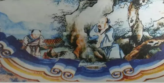 祝雞翁,河南洛陽(yáng)人也,養(yǎng)雞百年,有雞上千,體姿健美,啼鳴洪亮,肉美蛋多,個(gè)個(gè)有名,如拖錦碎沙、戴紅拍翠等,且一呼即應(yīng),居然成為北京頤和園長(zhǎng)廊彩畫(huà)故事之二十九。