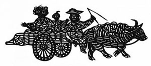 《姥爺送外甥》是靜樂(lè)民間老剪紙藝術(shù)家辛芙英早年的一幅剪紙,也是靜樂(lè)剪紙最具代表性的一幅名作,現(xiàn)收藏于中國(guó)美術(shù)館。這幅剪紙表現(xiàn)了閨女住完娘家之后,由父親(外甥的姥爺)趕著牛車送閨女和外甥回家的場(chǎng)面。剪紙人物造型生動(dòng)形象,樂(lè)趣橫生,令人百看不厭。