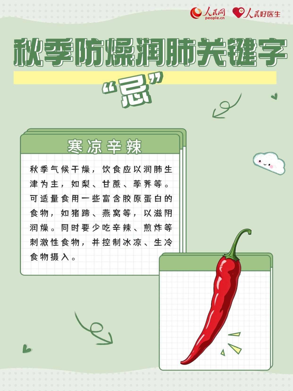 俗話說:“春生夏長,秋收冬藏?!鼻锾焓鞘斋@的季節(jié),天氣由熱轉(zhuǎn)涼,人體也進入一個調(diào)整和適應的階段??諝庵械乃譁p少,容易讓人感覺口干、皮膚干。從中醫(yī)角度看,秋季五行屬金,在氣候上與“燥”對應,在五臟上與“肺”對應,人體最易感受的就是秋燥。此時,秋季養(yǎng)生以防秋燥、潤肺為重點,為即將到來的冬天打好基礎(chǔ)。因此,牢記秋季養(yǎng)肺的“三忌三食”,尤為重要。