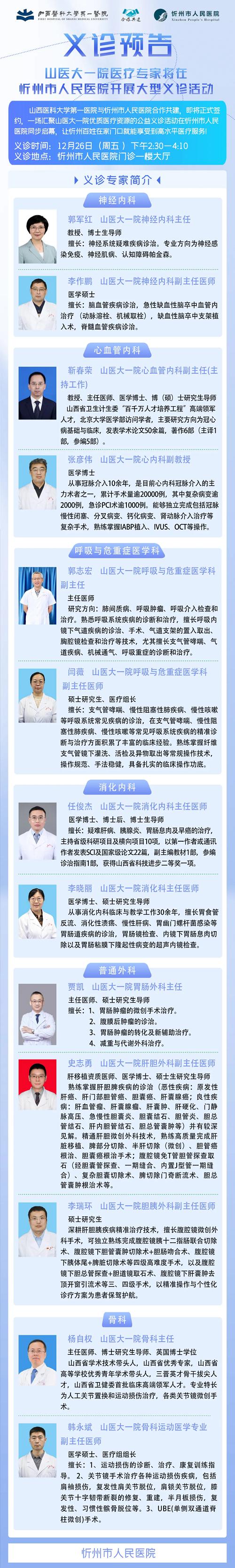 【義診預(yù)告】12月26日,山西醫(yī)科大學(xué)第一醫(yī)院醫(yī)療專家將在忻州市人民醫(yī)院開展義診活動