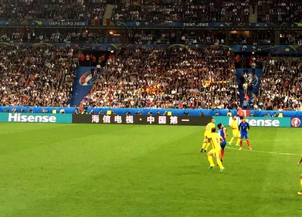 “海信電視,中國(guó)第一”!2016年6月10日,法國(guó)巴黎圣丹尼斯球場(chǎng),隨著歐洲杯揭幕戰(zhàn)打響,中國(guó)品牌海信的廣告出現(xiàn)在全球球迷面前。這是歐洲杯56年來(lái)第一次迎來(lái)中國(guó)贊助商,海信的廣告也在未來(lái)1個(gè)月內(nèi)出現(xiàn)在全部51場(chǎng)歐洲杯比賽中。