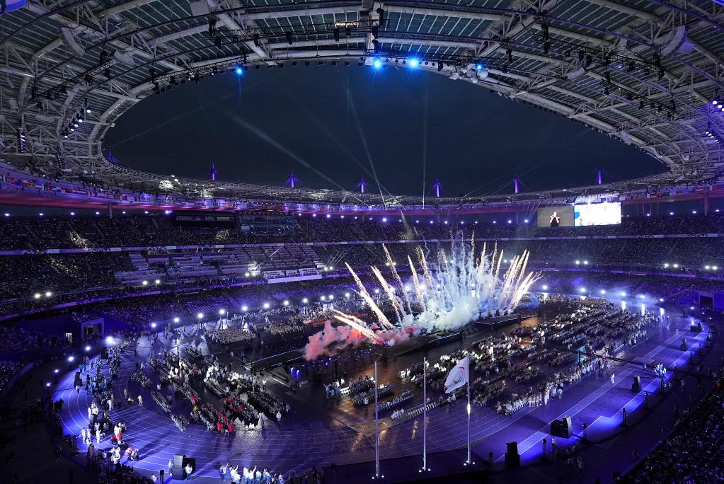 9月8日,演員在閉幕式上表演。新華社記者 張鋮 攝 從8月28日到9月8日,來自近170個代表團的4000多名運動員相聚巴黎,完成了22個大項、549個小項的比賽,用實踐詮釋了“勇氣、決心、激勵、平等”的殘奧會價值觀。 中國體育代表團參加了19個大項302個小項的比賽,共奪得94枚金牌、76枚銀牌、50枚銅牌、總計220枚獎牌,以較大優(yōu)勢贏得殘奧會獎牌榜 “六連冠”。中國選手在游泳、田徑、舉重、自行車等項目上創(chuàng)20項世界紀(jì)錄,以優(yōu)良的競技水平、文明禮儀向世界展現(xiàn)了我國殘疾人運動員的風(fēng)采,為祖國和人民贏得了新的榮譽。