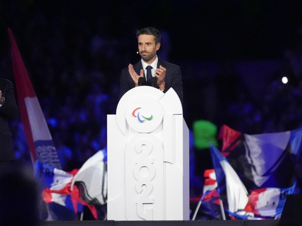 9月8日,巴黎奧組委主席托尼·埃斯坦蓋在閉幕式上致辭。新華社記者 才揚 攝 “殘奧會運動員們,在這最偉大的舞臺上,你們是表演的明星。你們書寫了一個我們共同的世界?!迸辽拐f,“從大皇宮到凡爾賽宮,從法蘭西體育場到拉德芳斯體育館,你們的表現(xiàn)點亮了這座城市,光芒四射。你們帶著希望來到這里,作為運動英雄和榜樣離開,為一個更美好、更包容的未來樹立了榜樣?!?/p> 六位新當(dāng)選的國際殘奧委會運動員委員會委員亮相,中國殘疾人舉重運動員譚玉嬌也在其中。隨后,2000名場地內(nèi)的志愿者代表所有志愿者接受全場歡呼和致謝。 八名舞者,包括幾位殘疾舞者,在舞臺中央展現(xiàn)了高難度舞技,隨后殘奧會會旗被移交到下一屆舉辦城市洛杉磯市長卡倫·巴斯手中。