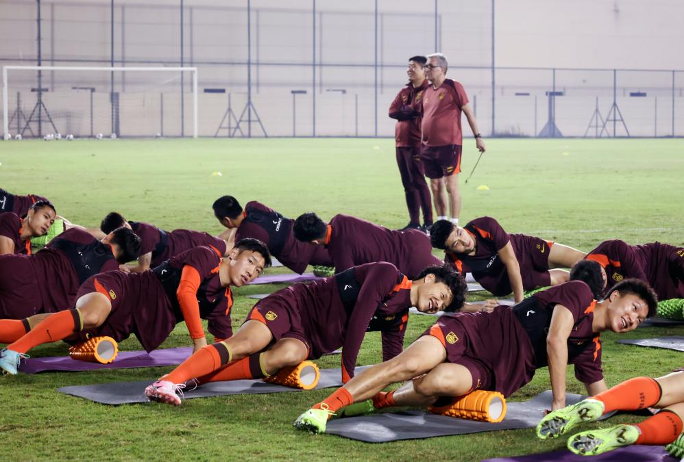 11月12日,中國國家男子足球隊成員在巴林進行賽前訓練,備戰(zhàn)14日與巴林隊的2026年世界杯亞洲區(qū)預選賽18強賽C組第五輪比賽。新華社記者 王海洲 攝