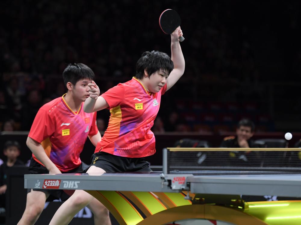 中國(guó)隊(duì)在第一階段比賽中三戰(zhàn)全勝,當(dāng)日在第二階段首場(chǎng)比賽中迎來(lái)歐洲老牌勁旅德國(guó)隊(duì)的挑戰(zhàn)。本次賽事德國(guó)隊(duì)弗朗西斯卡、邱黨、杜達(dá)等名將缺陣,因此整體實(shí)力有所下降。首場(chǎng)混雙比賽,中國(guó)隊(duì)沿用了第一階段發(fā)揮穩(wěn)定的林詩(shī)棟/蒯曼組合,他們第一局輕松獲勝。第二局,對(duì)手加強(qiáng)了在旋轉(zhuǎn)和落點(diǎn)上的變化,扳回一城。關(guān)鍵的第三局,“動(dòng)漫”組合頂住壓力,幫助中國(guó)隊(duì)2:1取得領(lǐng)先。