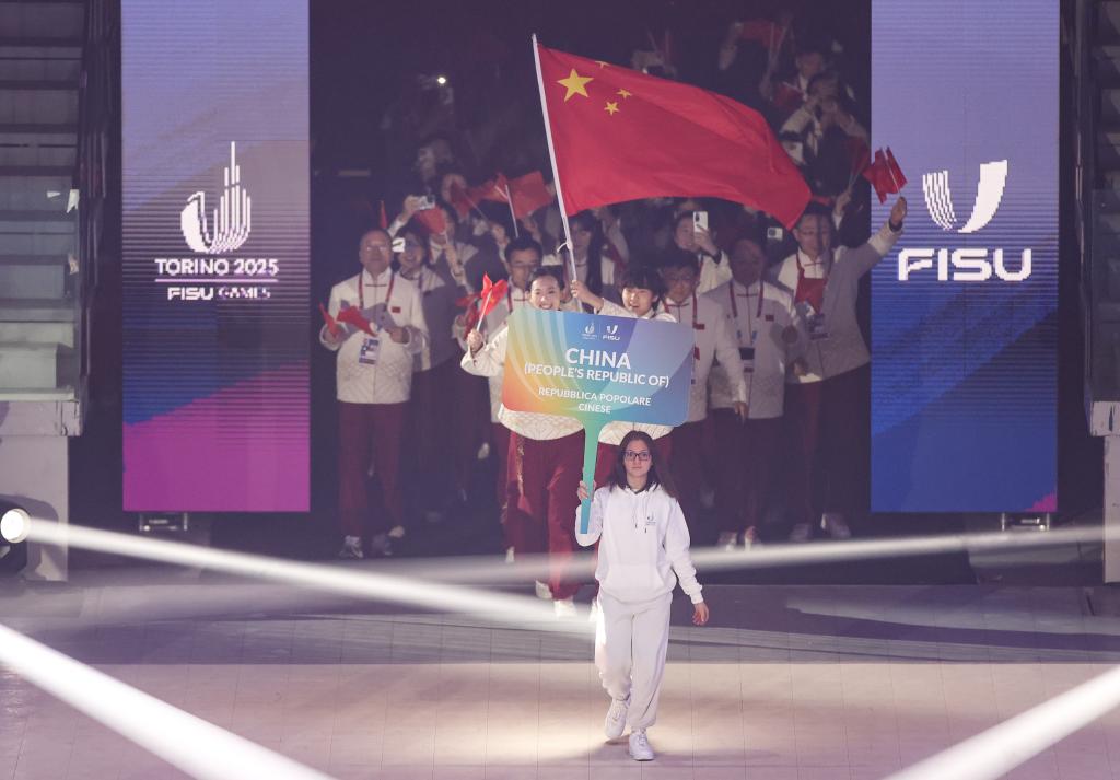 賽會(huì)開幕式于當(dāng)晚在都靈奧林匹克體育館舉行。入場(chǎng)儀式上,來自北京體育大學(xué)的女子冰壺運(yùn)動(dòng)員裴君杭和北方工業(yè)大學(xué)的男子高山滑雪運(yùn)動(dòng)員劉祥琪共同擔(dān)任中國(guó)代表團(tuán)旗手。