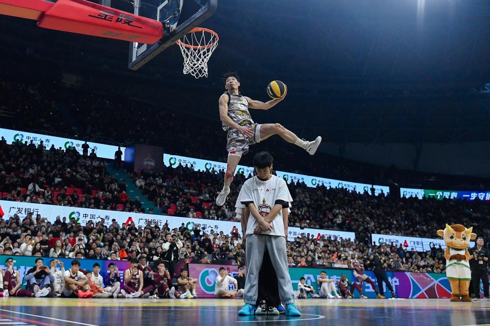 3月2日,陳登星(上)在扣籃大賽中。新華社記者 許暢 攝