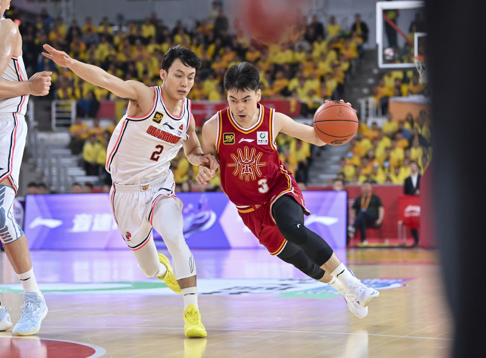 3月5日,廣東隊(duì)球員胡明軒(右)在比賽中上籃。當(dāng)日,在2024-2025賽季中國(guó)男子籃球職業(yè)聯(lián)賽(CBA)常規(guī)賽第36輪比賽中,廣東隊(duì)主場(chǎng)127:83戰(zhàn)勝遼寧隊(duì)。新華社發(fā)(鄭家雄攝)