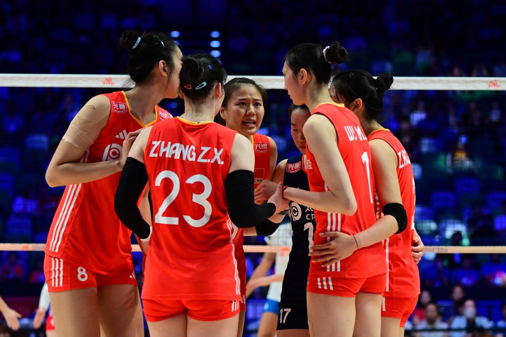 中國隊(duì)隊(duì)長龔翔宇(中)在比賽中與隊(duì)員交流。新華社記者 朱煒 攝 第二局中國隊(duì)仍然在開局不利的情況下取得領(lǐng)先,捷克隊(duì)將比分追成19:19后,以25:23扳回一城。 面對(duì)捷克隊(duì)的攻勢(shì),中國隊(duì)主教練趙勇提醒隊(duì)員放開進(jìn)攻,“不能保守”。果然,中國隊(duì)氣勢(shì)上壓倒對(duì)手,以25:15拿下第三局。 第四局兩隊(duì)比分再次陷入膠著,中國隊(duì)在15:11領(lǐng)先時(shí)被對(duì)手追成16:17。關(guān)鍵時(shí)刻王奧芊、吳夢(mèng)潔和王媛媛先后得分,中國隊(duì)再次拉開比分,以25:22取勝,從而以3:1的總比分取得本站“開門紅”。 吳夢(mèng)潔拿下全場最高的25分,莊宇珊拿下21分,王媛媛進(jìn)賬15分,龔翔宇得到11分。