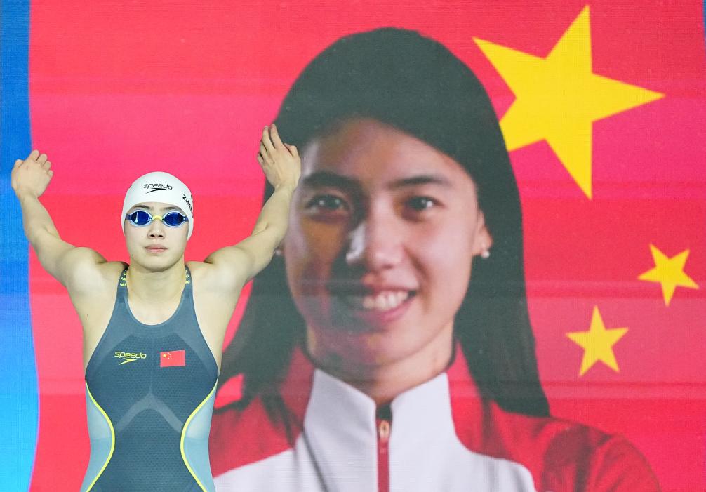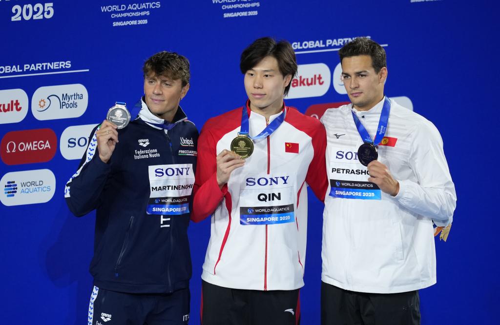 新華社新加坡7月28日電(記者夏亮、周欣)58秒23!金牌!獲勝后的覃海洋手持五星紅旗,不斷向現(xiàn)場(chǎng)觀眾致意。