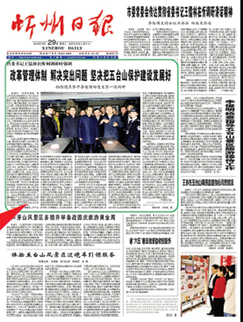 2015年4月2日,世界文化景觀五臺山作為5A景區(qū)被國家旅游局警告,9月14日又被央視“焦點訪談”曝光。9月21日至23日,省委書記王儒林深入五臺山就傳承弘揚(yáng)優(yōu)秀傳統(tǒng)文化、景區(qū)建設(shè)管理、文化旅游產(chǎn)業(yè)發(fā)展、宗教政策落實等進(jìn)行調(diào)研。他強(qiáng)調(diào),要高度重視五臺山保護(hù)建設(shè)發(fā)展,改革體制機(jī)制,創(chuàng)新管理理念,解決突出問題,切實提高景區(qū)管理服務(wù)水平,傳承弘揚(yáng)發(fā)展五臺山悠久的佛教文化、優(yōu)秀的歷史文化,帶動全省文化旅游產(chǎn)業(yè)做大做強(qiáng)。