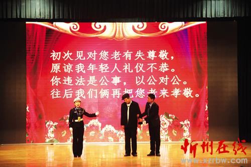 1月27日至29日,偏關(guān)縣公安局交警大隊交通安全文藝宣傳隊在隊長們的帶領(lǐng)下,先后走進市實驗中學(xué)、市客運中心、國家電網(wǎng)忻州供電分公司進行了三場演出,用自編自導(dǎo)自演、群眾喜聞樂見的“漫翰調(diào)”、“二人臺”、北路梆子、民歌等一系列極具地域文化特色的地方小戲、說唱歌舞等曲藝形式進行宣傳演出,贏得滿堂喝彩,場場掌聲雷動。作為春節(jié)回家路上的一道文化盛宴,這次春節(jié)前的平安出行警示教育“送安全下鄉(xiāng)”巡演是我市公安交警精心策劃、編排的春運交通安全宣傳行動之一。28日,市客運中心人頭攢動,熙熙攘攘,大廳外懸掛的橫幅標(biāo)語“守護您的平安出行,保障道路安全暢通是每一位交警的神圣職責(zé)!”格外醒目。候車大廳里,暖意融融,市公安局交警支隊組織的春運交通安全文藝演出正在進行,交警版的民間小調(diào)《拜大年》、小品《警鐘聲聲》、雙簧《二愣子》等節(jié)目令人賞心悅目、捧腹不止。在歡笑之余,提醒和教育廣大群眾自覺抵制不文明、不安全交通行為,觀看演出的旅客和客車司機紛紛感慨,這樣的宣傳教育生動形象,人人愛看且耐人尋味,警示作用很大。