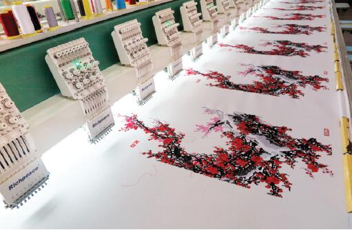 走進天津?qū)氂娔X機械有限公司的大門,迎面正對的是辦公綜合樓,樓頂中央聳立著“富怡(Richpeace)”注冊商標,樓頂從左至右用紅字排列著公司的主要產(chǎn)品種類:“電腦繡花機”“電腦絎縫機”“電腦絎繡機”“激光切割雕刻設備”“服裝CAD軟件”“繪圖儀”“切割機”“鋪布機”“電腦裁床”“全自動縫紉機”。