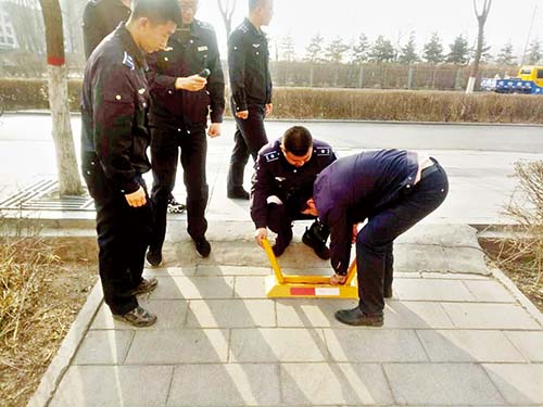 事后,該隊根據(jù)城市道路管理相關(guān)法律法規(guī),依法對設(shè)置的10個地鎖和11個隔離欄進(jìn)行拆除,還路于民,贏得了廣大市民的贊許。下圖為執(zhí)法人員正在拆除私自安裝的地鎖。(張志遠(yuǎn) 董子源)