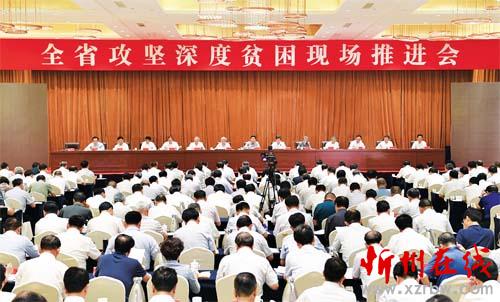 山西日?qǐng)?bào)訊(記者尚慧輝)6月19日,省委在忻州召開全省攻堅(jiān)深度貧困現(xiàn)場(chǎng)推進(jìn)會(huì),也是省委中心組擴(kuò)大的專題學(xué)習(xí)會(huì)。會(huì)議以習(xí)近平扶貧思想為指導(dǎo),分析一年來全省攻堅(jiān)深度貧困形勢(shì),堅(jiān)持目標(biāo)和問題導(dǎo)向,激勵(lì)干部更好擔(dān)當(dāng)作為,強(qiáng)化精準(zhǔn)用力舉措,下足繡花功夫,為堅(jiān)決打贏脫貧攻堅(jiān)戰(zhàn)奠定扎實(shí)基礎(chǔ)。省委書記駱惠寧出席會(huì)議并講話,他強(qiáng)調(diào),要認(rèn)真學(xué)習(xí)貫徹習(xí)近平總書記對(duì)打贏脫貧攻堅(jiān)戰(zhàn)三年行動(dòng)的重要指示,按照中央指導(dǎo)意見及省委部署,咬定總攻目標(biāo),落細(xì)攻擊點(diǎn)位,完善督戰(zhàn)機(jī)制,奪取戰(zhàn)役全勝。打贏三年脫貧攻堅(jiān)戰(zhàn),必須牢牢抓住主要矛盾、聚焦深度貧困,做到焦點(diǎn)不散、靶心不變,持續(xù)用力、盡銳出戰(zhàn),以攻堅(jiān)深度貧困帶動(dòng)面上扶貧工作。國務(wù)院扶貧開發(fā)領(lǐng)導(dǎo)小組副組長(zhǎng)、國務(wù)院扶貧辦主任劉永富出席會(huì)議并講話。省委副書記、省長(zhǎng)樓陽生主持會(huì)議。