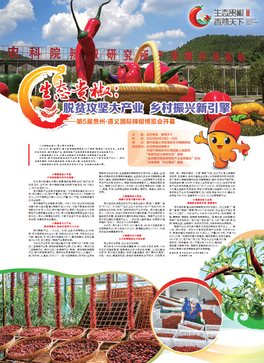 8月18日,第5屆貴州·遵義國際辣椒博覽會(以下簡稱“辣博會”)如約而至。這是貴州省為宣傳、推介辣椒產(chǎn)業(yè),推動辣椒產(chǎn)業(yè)高質(zhì)量發(fā)展搭建的專業(yè)性會展平臺。