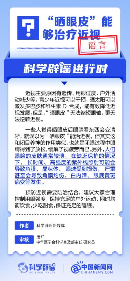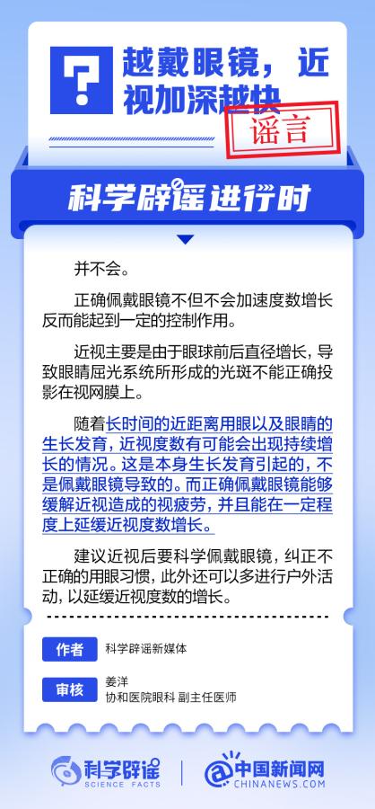 中新網(wǎng)6月6日電 6月6日是全國愛眼日。隨著大家越來越重視護(hù)眼,人們開始自發(fā)地從網(wǎng)上查找一些護(hù)眼知識(shí),與此同時(shí),網(wǎng)上也出現(xiàn)了很多的護(hù)眼誤區(qū)。有哪些常見的所謂“護(hù)眼知識(shí)”其實(shí)是誤區(qū)?眼鏡度數(shù)配高點(diǎn)好還是配低點(diǎn)好?詳情↓ (來源:@科學(xué)辟謠 中國新聞網(wǎng)微博)