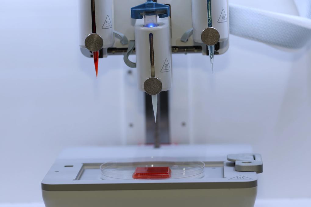 在陣陣規(guī)律的“打印”聲中,裝有紅色和白色“生物墨水”的打印噴頭來回移動,白色托盤里方塊形狀的“豬肉”逐漸變厚,色澤誘人……走進南京農(nóng)業(yè)大學(xué)肉品質(zhì)量控制與新資源創(chuàng)制全國重點實驗室,科研人員正在開展3D生物打印細胞培養(yǎng)肉研究。 南京農(nóng)業(yè)大學(xué)特聘教授、實驗室主任周光宏說,3D生物打印細胞培養(yǎng)肉技術(shù)已經(jīng)成熟,無論是形狀還是肥瘦比例,都可以實現(xiàn)個性化設(shè)定。 周光宏告訴半月談記者,“細胞培養(yǎng)肉”是依據(jù)肉類在動物機體里的生長規(guī)律,利用體外培養(yǎng)和生物制造方式培養(yǎng)動物細胞而生產(chǎn)的可食用肉類?!耙簿褪钦f,不需要養(yǎng)殖、屠宰就可以吃到肉,口感、風(fēng)味可控,還可以人工調(diào)節(jié)蛋白質(zhì)、脂肪含量,減少飽和脂肪酸成分?!?/p>