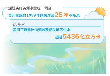 黃委統(tǒng)計(jì)顯示,25年來,黃河干流累計(jì)向流域及相關(guān)地區(qū)供水超過5436億立方米,有效支撐了流域經(jīng)濟(jì)社會發(fā)展和生態(tài)環(huán)境保護(hù)。