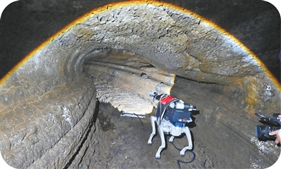 圖為柔性臂機器人在鏡泊湖火山地下熔巖管道現(xiàn)場工作。張春祥攝(人民視覺)