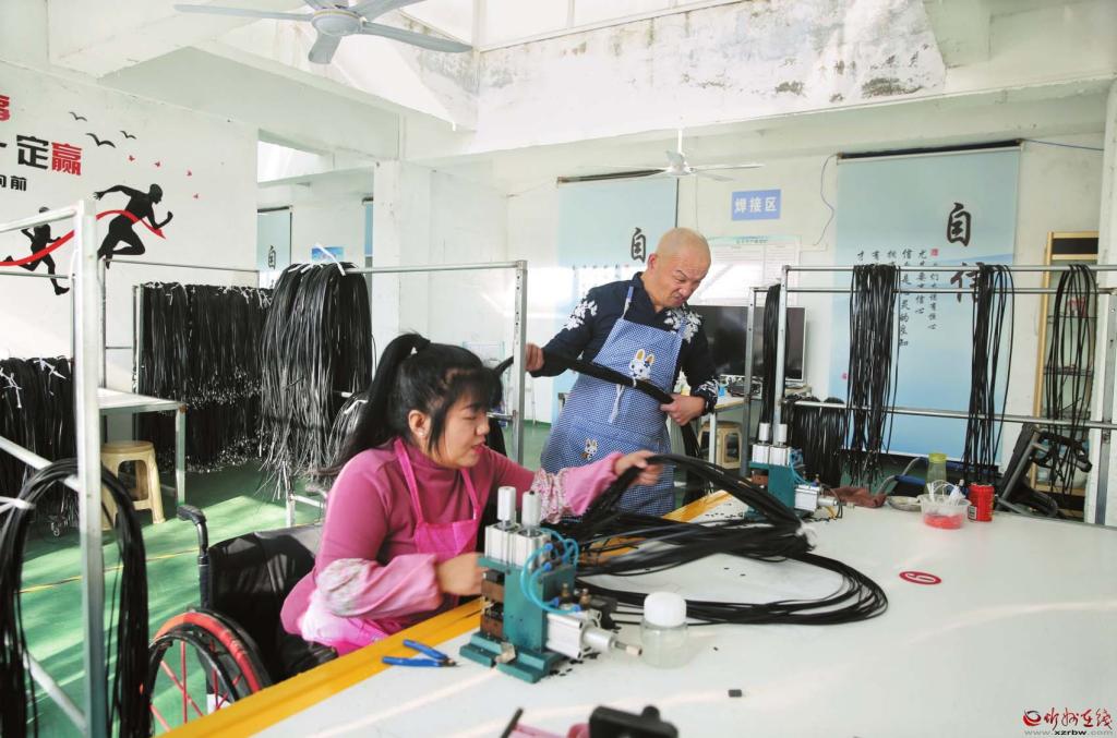 李國(guó)飛夫妻在線(xiàn)束加工幫扶車(chē)間忙碌